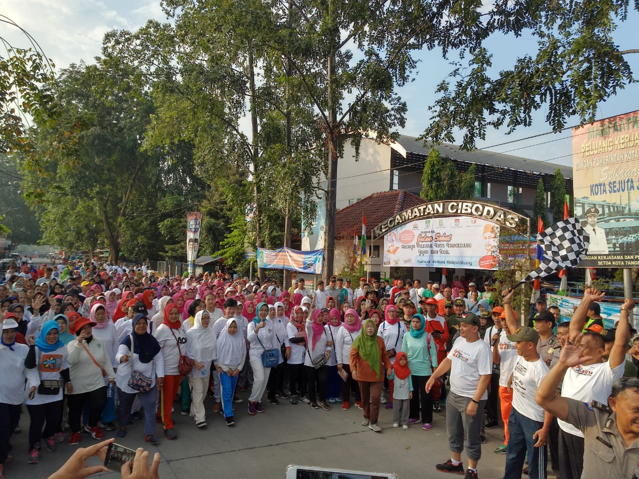 Antusias warga Kecamatan Cibodas untuk mengikuti jalan sehat itu terlihat sejak pukul 05.45 mereka sudah mulai berdatangan ke halaman kantor kecamatan di Jl Prambanan.