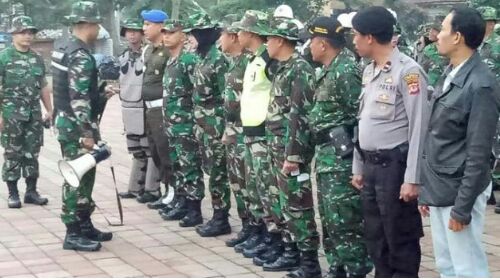 Apel pagi yang dilakukan Personil gabungan di lapangan sempur sebelum melakukan eksekusi terhadap tujuh rumah dinas TNI AD di Kelurahan Sempur.