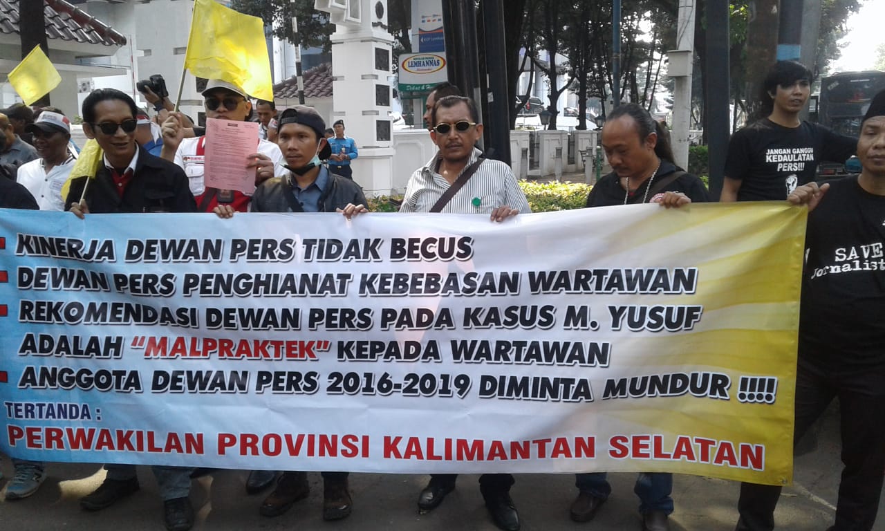 Tuntutan insan pers ini disampaikan berkenaan dengan meninggalnya salah satu rekan Journalis di Kotabaru Kalimantan Selatan. Selain itu beberapa gugataan juga disampaikan beberapa organisasi pers yang tidak terverifikasi oleh dewan pers.