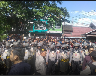 Setelah beberapa saat usai orasi tersebut, di sinilah massa dan pasukan pengamanan kembali bersitegang. Massa Appi-Cicu terlihat mendorong pagar kawat yang telah dipasang oleh petugas.