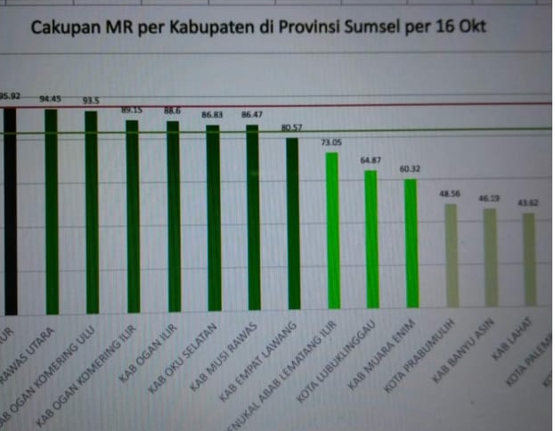 Lanjutnya, seyogyanya pelaksanaan pemberian Vaksin MR ini berakhir bulan September 2018, dikarenakan pemberian vaksin MR baru mencapai 85% dari target Kementerian Kesehatan RI  95% atau sebanyak 224.472 anak yang harus divaksin maka ditambah lagi 1 bulan hingga akhir Oktober 2018, hingga saat ini (17/10/2018) pukul 11.29 WIB sudah mencapai 89.15% atau sebanyak199.406 anak yang sudah divaksin MR dan OKI sendiri berada di peringkat 5 di Sumsel, sebelumnya kita telah memberitahu Mutawalli dari Kemenag OKI kalau MUI Kabupaten kita tidak tahu dimana kantornya dan siapa ketuanya, secepatnya kita berkoordinasi dengan MUI dan mensosialisasikan Vaksin ini kepada masyarakat OKI, tandasnya.