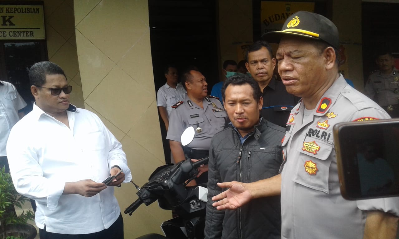 Portalindo.co.id, Jakarta –Kapolsek Kalideres Kompol Pius Ponggeng SH didampingi Kanit Reskrim AKP Syafri Wasdar SH menyerahkan sepeda motor kepada pemiliknya di Polsek Kalideres, Senin, (28/01/2019)