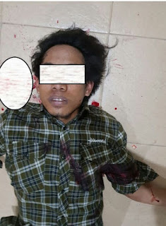 Setelah beberapa menit kemudian teman korban datang dan selanjutnya OTK tersebut langsung diamankan ke Kantor Sat Intel Kor Brimob. Sesampainya di Kantor Sat Intel Kor Brimob (tepatnya di parkiran) OTK tersebut langsung mengeluarkan pisau dan menusuk korban.