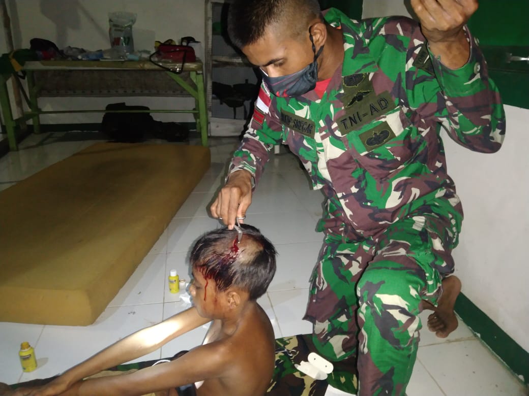 PORTALINDO.CO.ID, KLAWIK – Personil satgas yonif 144/jy letda Ckm Aula Dinata melaksanakan kegiatan operasi kecil luka robek di kepala, kepada warga di desa klawik kecamatan Batang lupar kabupaten Kapuas hulu Senin (07/06/2021).