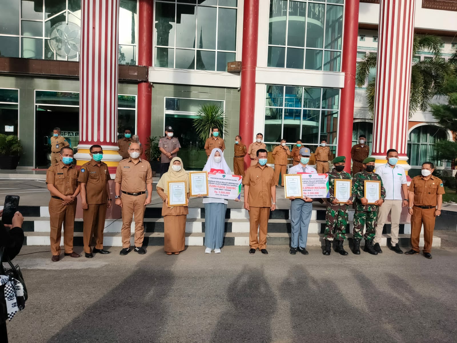 Kedua orang yg menerima penghargaan itu adalah Pelda Nofrizal dan Serka Svend Pri, Penghargaan tersebut di berikan oleh Bupati Pessel pada acara Pelepasan anggota calon Paskibraka Nasional dan Provinsi dari Pessel pada hari ini Senin tanggal 19 Juli 2021 di Lapangan apel Kantor Bupati Pessel.