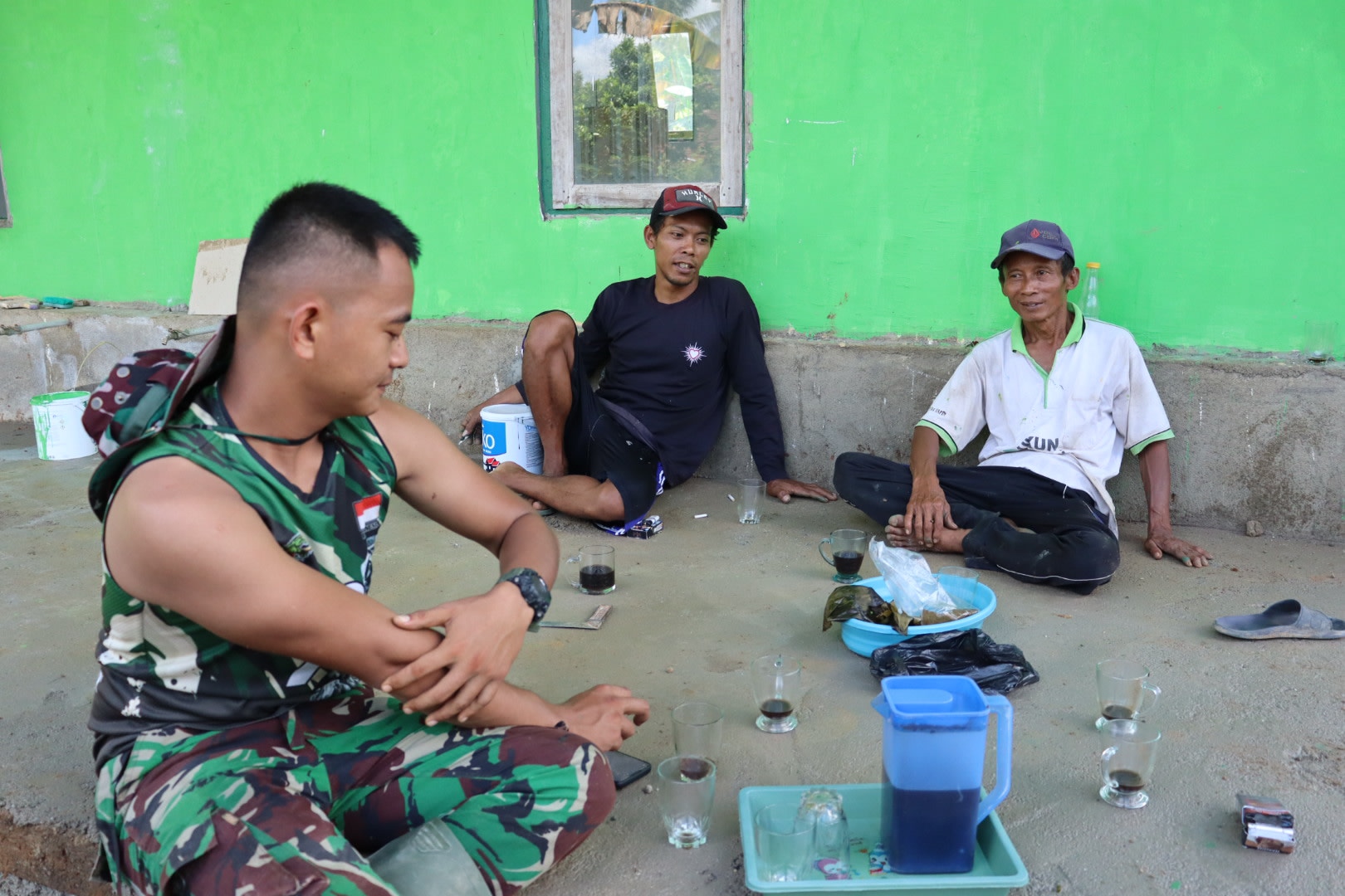 PORTALINDO.CO.ID, TAPIN. Dalam pelaksanaan program TNI Manunggal Membangun Desa (TMMD) ke-111 Kodim 1010/Tapin, di sela-sela mengerjakan sasaran fisik tambahan berupa perehaban Musholla, Desa Suato Baru, Kecamatan Salam Babaris, tetap melaksanakan komunikasi sosial (Komsos) antara satgas TMMD bersama masyarakat, Senin, (21/6/2021).