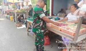 Portalindo.co.id, Kodam Jaya, Jakarta Barat – Dengan cara berinteraksi dengan pedagang dan pembeli kami dapat mengetahui harga sembako dipasar tradisonal yang ada di wilayah. Hal tersebut di katakan Babinsa Koramil 01/Tamansari Kodim 0503/Jakarta Barat, Serma Wakdinator. Sabtu, (11/05/2024).