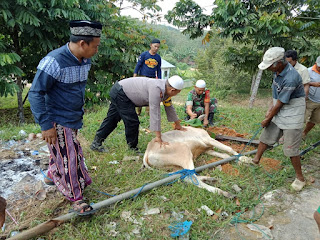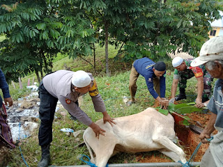 Kegiatan yang kita lakukan bersama Bhabinkamtibmas Brigpol Ahmad Zainuri dengan warga saat ini sebagai bentuk kepedulian terhadap warga yang menjadi binaan dengan membantu pelaksanaan penyembelihan hewan Kurban dan mendistribusikan kepada warga yang berhak menerimanya, sehingga pelaksanaan tugas panitia terbantu serta kegiatan bisa berjalan dengan tertib, ujarnya Babinsa.