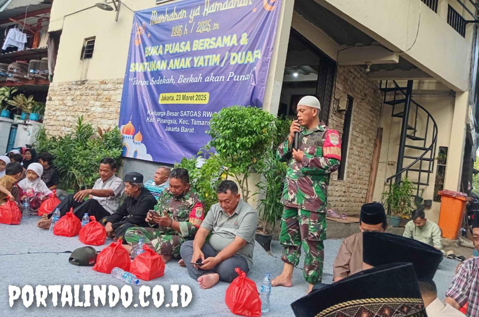Portalindo.co.id | Kodam Jaya, Jakarta Barat _ Babinsa Koramil 01/Tamansari Kodim 0503/Jakarta Barat, Serma Wakdinator dan Sertu Aprianto bersama Lurah Pinangsia bapak Ir Iwan Setiawan hadiri Buka Bersama (Bukber) dan santunan dilaksanakan di Sekretariat RW. 06, Jalan Lada Dalam, No.48, RT.06/RW. 06, Kelurahan Pinangsia, Kecamatan Tamansari Jakarta Barat. Minggu (22/03).
