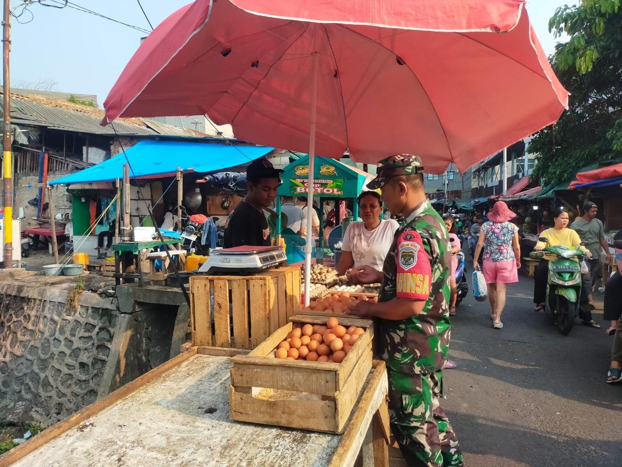 Portalindo.co.id | Kodam Jaya, Kodim 0503/JB _ Dalam upaya untuk menjaga stabilitas harga sembako khususnya di wilayah binaannya, Babinsa Koramil 01/Tamansari, Serka Suharno melaksanakan monitoring langsung terkait perkembangan harga sembako di pasar tradisional PD Pasar Pecah Kulit Jalan Mabes XI, Kelurahan Pinangsia Kecamatan Tamansari Jakarta Barat. Minggu (6/7).
