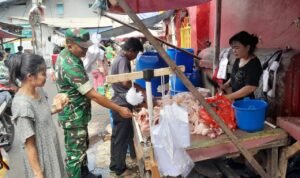 Portalindo.co.id | Kodam Jaya, Kodim 0503/JB _ Sebagai kegiatan rutin yang di atensikan komando atas serta mendukung ketahanan pangan nasional, Babinsa Kelurahan Mangga Besar, Serka Rudiyanto anggota Koramil 01/Tamansari sambangi salah satu pasar yang ada di wilayah Kelurahan Pinangsia, Kecamatan Tamansari. Kamis (17/7).