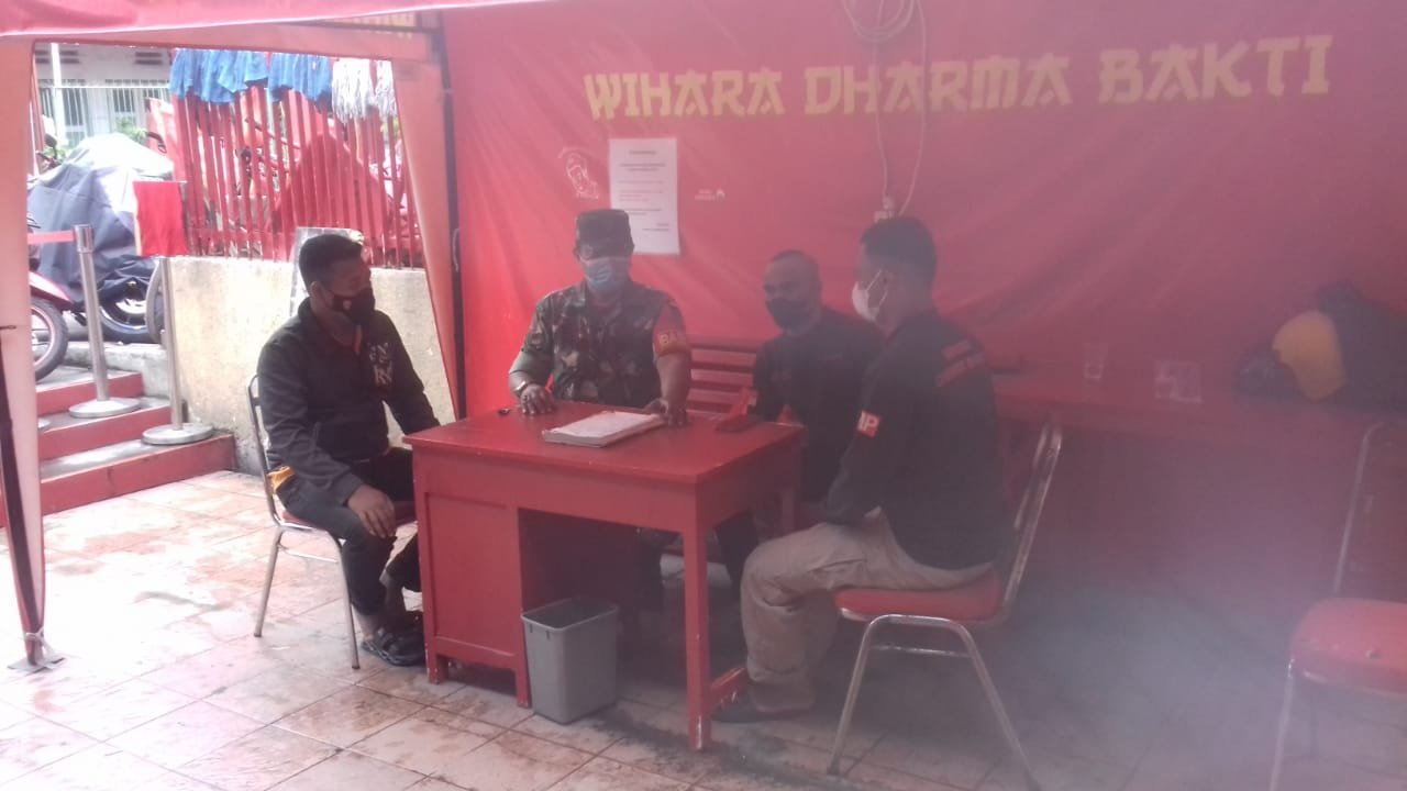 PORTALINDO.CO.ID, Kodam Jaya, Jakarta Barat – Babinsa Koramil 01/Tamansari Kodim 0503/Jakarta Barat, Serda Amramus melaksanakan Komunikasi Sosial (Komsos) dengan Security Wihara Dharma Bakti Jalan Kemenangan III, Rw. 02, Kel. Glodok, Kec. Tamansari, Jakarta Barat. Kamis (8/9)