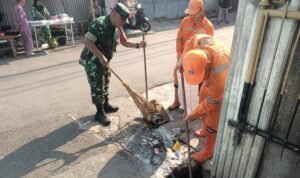 Portalindo.co.id | Kodam Jaya, Kodim 0503/JB _ Tingkatkan kebersihan di lingkungan di musim penghujan, Babinsa Kelurahan Krukut, Serma Agus Priyono anggota Koramil 01/Tamansari bersama PPSU membersihkan kawasan penduduk, saluran air got, sampah rumah beserta sampah dilingkungan sepanjang jalan dan memotong pohon yang sudah tua atau rapuk di RW. 03 Kelurahan Krukut.