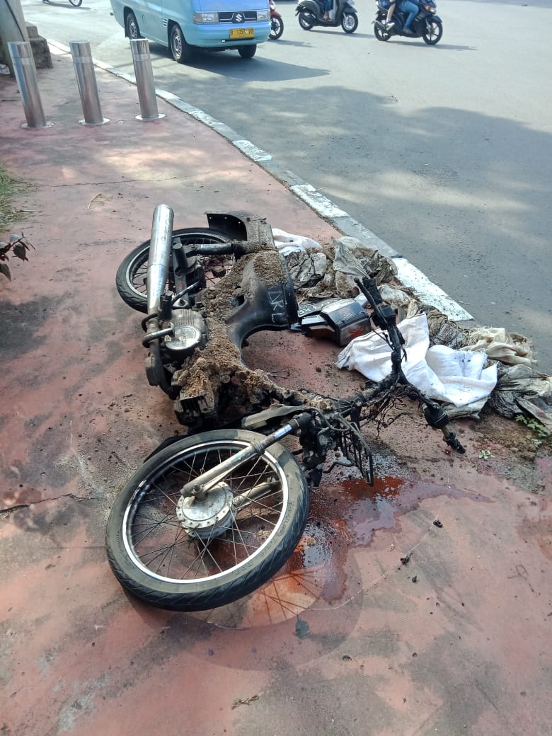 “Sampai ditengah tengah Sepeda motor B 5273 RF yang dari Pangeran Jayakarta menabrak Bus Trans Jakarta bagian bemper depan yang mengakibatkan sepeda motor roboh terbakar,” imbuh Sugeng.
