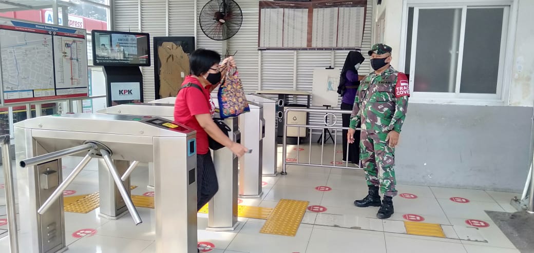Menurut Danramil Cengkareng Kapten Edy Moerdoko, selain himbauan para Babinsa juga membagikan masker kepada masyarakat yang tidak menggunakan masker saat berada di stasiun.