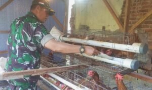 “Personel koramil yang melaksanakan piket turun langsung dengan melakukan perawatan hingga memberi pakan dan minum pada ayam petelur, dan juga membersihkan kandang.”kata Babinsa.
