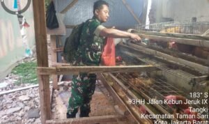 Portalindo.co.id | Kodam Jaya, Jakarta Barat _ Dalam rangka mendukung ketahanan pangan nasional, Koramil 01/Tamansari Kodim 0503/JB Budidaya ayam petelur skala kecil di lahan pos 12 Jalan Mangga Besar IX, RT. 015/001, Kelurahan Tangki, Kecamatan Tamansari – Jakarta Barat. Rabu (15/10).