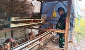 Portalindo.co.id | Kodam Jaya, Jakarta Barat _ Piket Koramil 01/Tamansari Pelda Ery Hendrawan sambangi Kandang ayam petelur dalam rangka pengecekan kondisi ayam, memberi pangan dan minum, bersihkan kandang dan memungut telur pada pukul 15.40 Wib. Jum’at, 03 Oktober 2025.