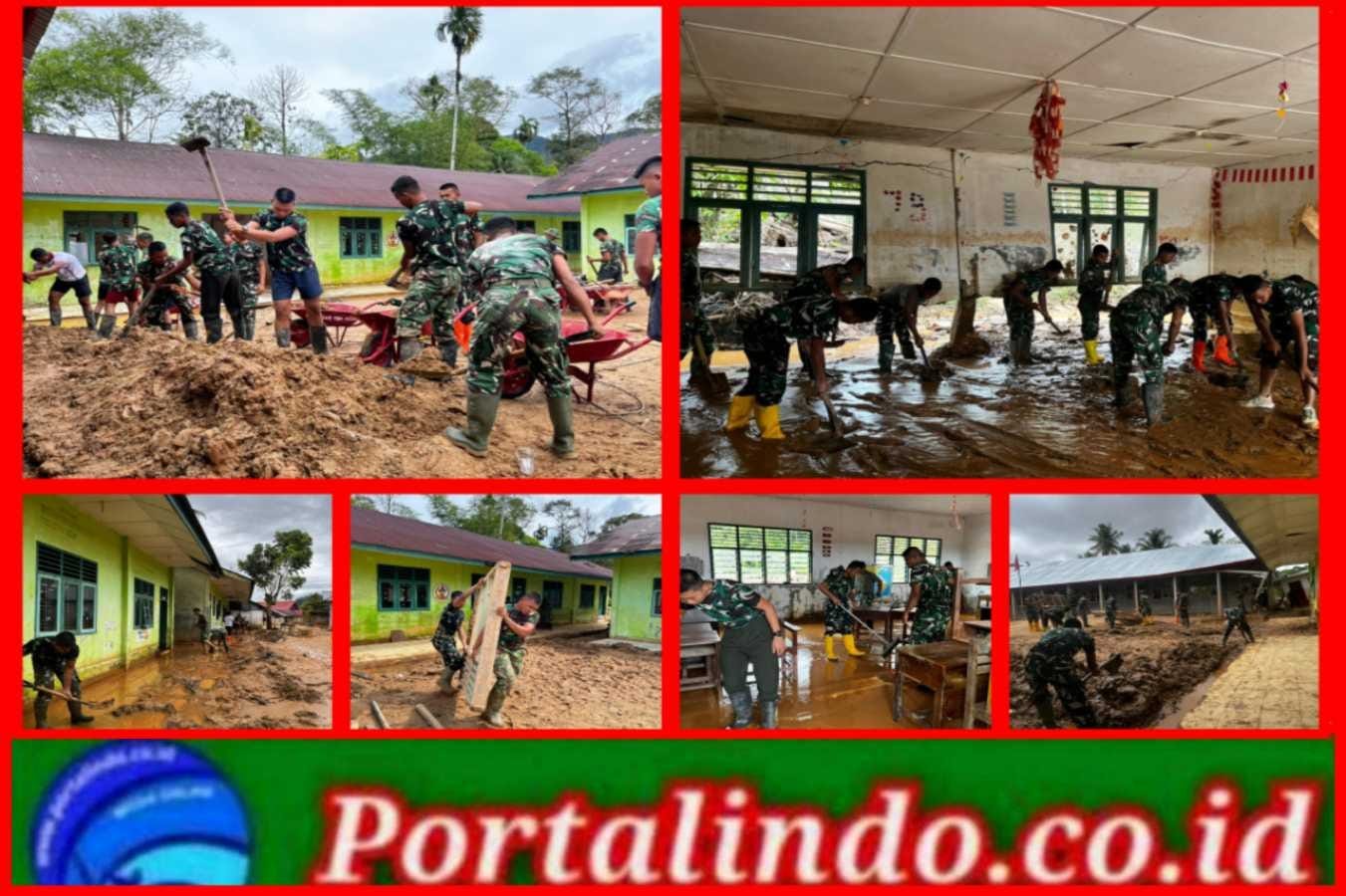 TAPANULI TENGAH, tniad.mil.id — Satgas Penanggulangan Bencana Alam (Gulbencal) kembali bergerak cepat melaksanakan pembersihan SDN 158506 Tukka di Lingkungan IV, Kelurahan Bonalumban, Kecamatan Tukka, Minggu (22/2/2026), setelah curah hujan tinggi memicu banjir susulan yang menggenangi area sekolah dengan air dan lumpur.