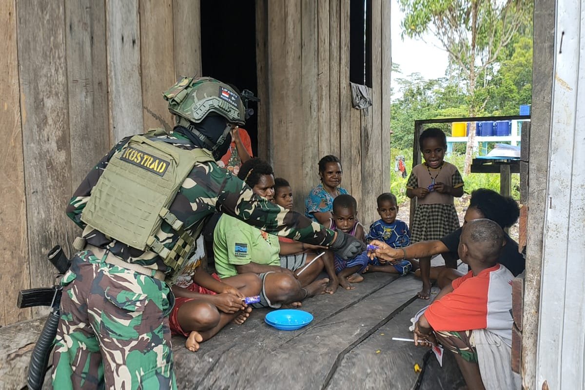 inisiatif Satgas Yonif 509 Kostrad dalam membagikan Sembako di Kampung Puyagiya.