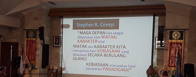 Dalam seminar ini, Sudiana bahkan menantang anggota KMHDI dan Peradah yang bisa menghafal tiga sloka akan ia kasi uang Rp 100 ribu. (Titus.Y)