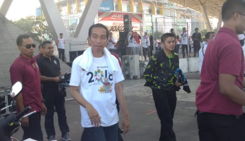 Foto Presiden RI Joko Widodo Saat Di sulawesi Selatan Hadiri Jalan sehat.(Minggu 29/7/2018 Kwl/Portalindo.co.id)