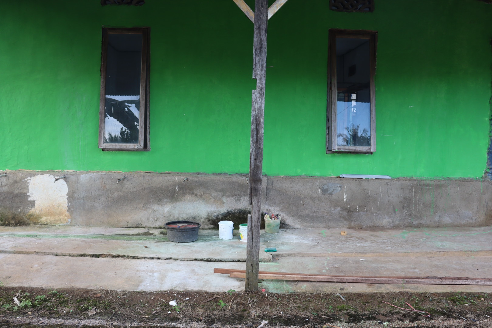Salah satu warga Desa Suato Baru, Jumadri (57) mengatakan untuk renovasi musholla Muthmainnah hari ini akan mendirikan tiang lalu dilakukan pemasangan plafon.