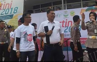 Jakarta-Polda Metro Jaya bersama dengan komunitas motor ‘Red Dragon’ menggelar lomba meme yang bertajuk ‘anti hoax’ di Bundaran HI, Jakarta Pusat, Minggu (15/4/2018).