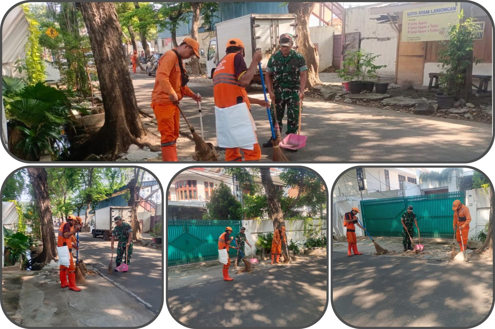 Portalindo.co.id | Kodam Jaya, Kodim 0503/JB _ Dengan melibatkan PPSU Kelurahan Tamansari, Babinsa Koramil 01/Tamansari Serka Rusnanto melaksanakan pembersihan lingkungan di Jalan Mangga Tamansari II, Rw. 02, Kelurahan Tamansari, Kecamatan Tamansari, Jakarta Barat. Sabtu (27/12).