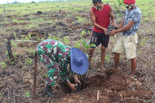 Portalindo.co.id, Kubu Raya – Guna mendukung program penghijauan, Satuan Bintaldam XII/Tpr melaksanakan penanaman pohon dilahan milik warga di Tengkorak RT/RW 01/01 Desa Teluk Kapuas, Kec. Sungai Raya, Kab. Kubu Raya. Selasa (8/6/21)