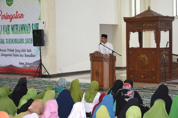 Diantara hikmah peristiwa Isra Miraj yang dialami oleh Nabi Muhammad SAW adalah diterimanya secara langsung perintah shalat lima waktu dari Allah SWT untuk disampaikan kepada umatnya. Perintah shalat merupakan ibadah yang sangat penting, melaui pengamalan shalat seorang hamba dapat mencapai derajat yang terpuji di hadapan Allah SWT. Hal tersebut disampaikan oleh Wakil Bupati Tasikmalaya melalui kata sambutan yang dibacakan oleh Staf Ahli Bupati Tasikmalaya Bidang Pemerintahan dan Hukum Drs.Roni Syahroni MM., pada acara Peringatan Isra Miraj Tingkat Kabupaten Tasikmalaya yang berlangsung di Masjid Agung Baiturrohman Kabupaten Tasikmalaya, Singaparna.