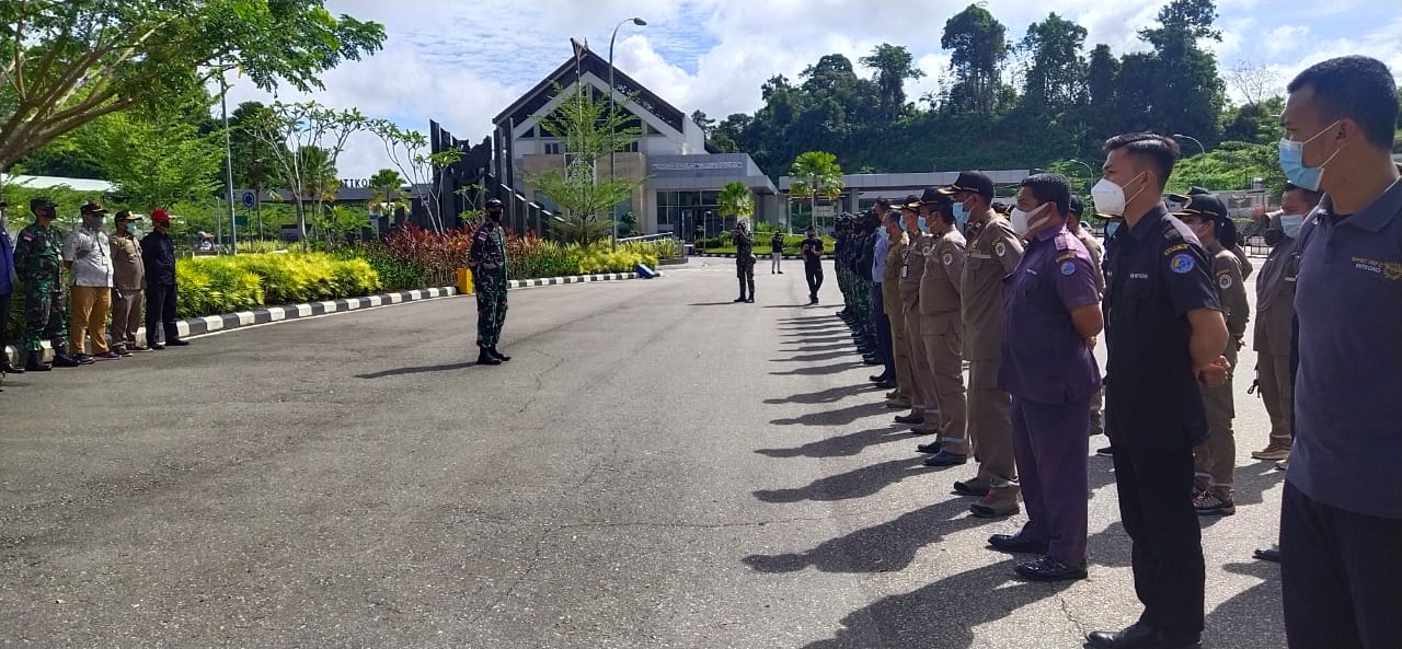 Cegah Covid-19, Satgas Pamtas Yonif 642/Kps Bersama Stakeholder Gelar Apel Sterilisasi Prokes