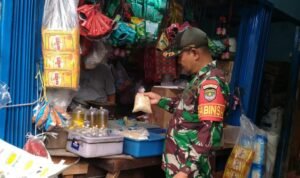 Portalindo.co.id | Kodam Jaya, Jakarta Barat _ Perkembangan harga sembako di PD Pasar Gang Kancil Jalan Keamanan Kelurahan Keagungan, Kecamatan Tamansari Jakarta Barat terus di pantau oleh Babinsa Koramil 01/Tamansari Kodim 0503/Jakarta Barat.