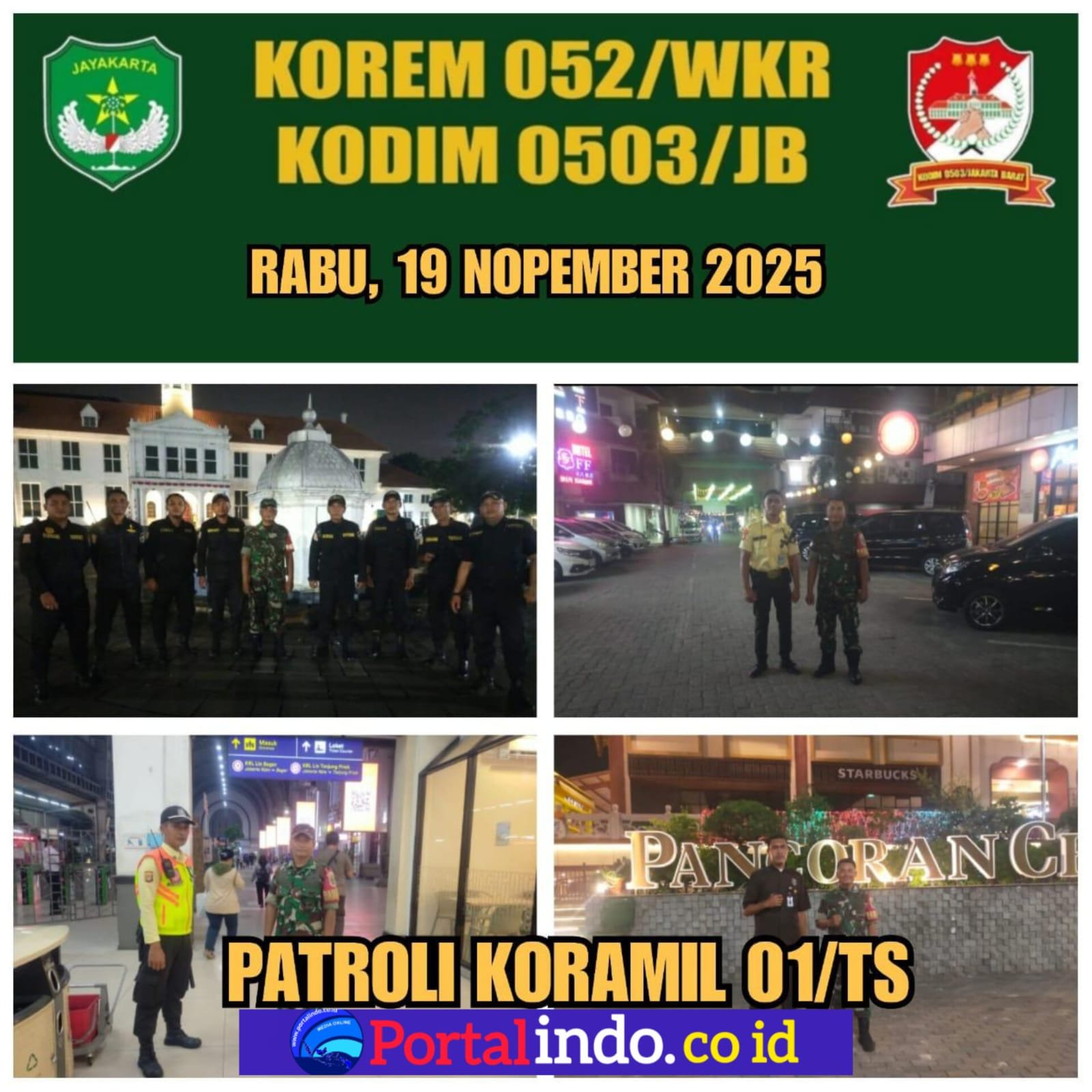 Portalindo.co.id | Kodam Jaya, Jakarta Barat _ Koramil 01/Tamansari Kodim 0503/JB melalui Babinsa Serka Suharno melakukan patroli malam bersama Komponen pendukung di wilayah teritorial Koramil 01/Tamansari Rabu malam , (19/11/2025)
