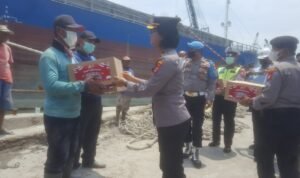 Dalam pemberian bansos itu Kapolsek didampingi Wakapolsek AKP Ikrom Baihaki, Kanit Intel AKP Yuyun Suryana dan Suwadi ketua TKBM Pelabuhan Sunda Kelapa.