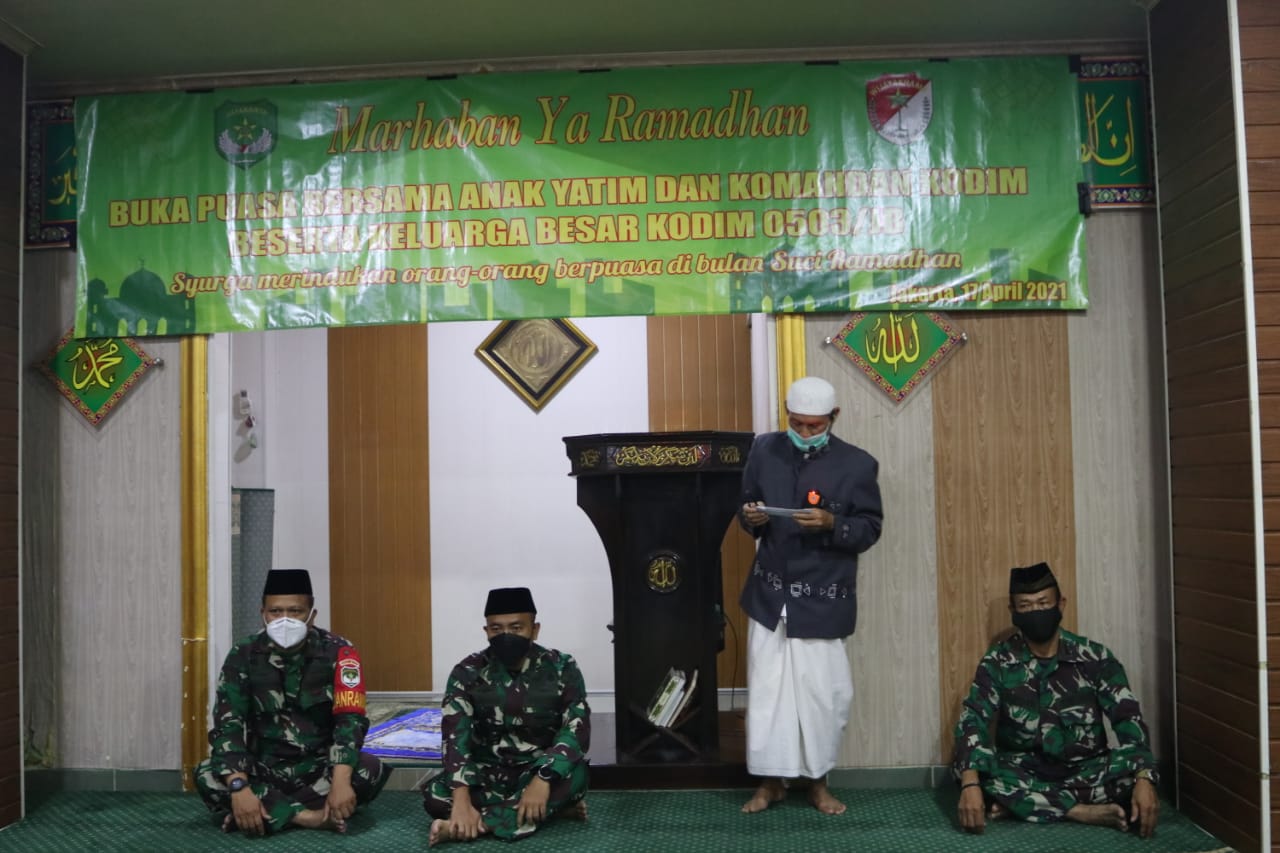 Dandim 0503/JB, Kolonel Inf Dadang Ismail Marzuki, S.IP dalam sambutannya menyampaikan Puji Syukur kehadirat Allah SWT yang telah melimpahkan Rahmat-Nya kepada kita semua semoga di bulan suci Ramadhan ini, bulan yang penuh berkah dan ampunan bagi kita semua sebagai umat dan pengikutnya Nabi Muhammad Saw.