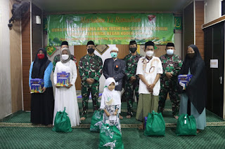 “Keluarga besar Kodim 0503/JB melaksanakan berbuka puasa dan memberikan Paket Sembako , bingkisan dan santunan kepada anak yatim secara dengan menghadirkan Lima anak Yatim sementara yang lain akan diberikan secara langsung ke rumah.”Kata Kapten Edy Moerdoko.