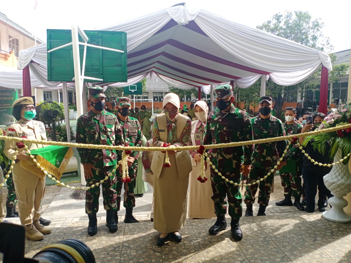 Kunjungan Pangdam Jaya dalam rangka mendampingi Ketua Yayasan Kartika Jaya Cabang XVIII Jayakarta Rahma Setyaningsih meresmian Gedung SMK Kartika X-1 Koordinator Kodim 0503/JB.