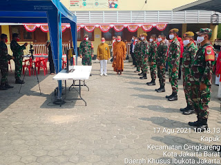 Danramil 04/Cengkareng, Kapten Cpl Edy Moerdoko mengatakan, hari ini, Selasa, 17 Agustus 2021 serbuan vaksinasi tetap kita laksanakan dan mengajak seluruh warga masyarakat untuk mengikuti upacara melalui virtual di sini.