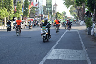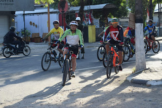 Danrem 081/DSJ Kolonel Inf Masduki, S.E., M.Si. beserta jajarannya, pagi ini tampak berolahraga dengan gowes bareng menuju ke Asrama Bosbow, Jl. Diponegoro Kota Madiun, Jumat (23/8/19).