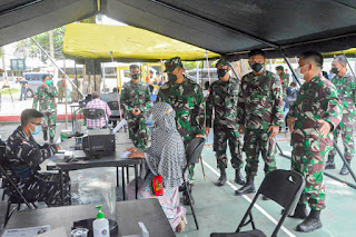 PORTALINDO.CO.ID JAKARTA – Komandan Korem (Danrem) 172/PWY Brigjen TNI Izak Pangemanan beserta Komandan Lanud Silas Papare Marsma TNI Budi Achmadi didampingi oleh Kasiops Korem 172/PWY Kolonel Inf Josep D.D Surbakti, S.E., dan Dandim 1701/Jayapura Kolonel Edwin Apria Chandra, S.E., meninjau Serbuan Vaksinasi gelombang kedua tahap satu TNI-Polri dan Pemerintah Kota Jayapura yang dipusatkan di Lapangan Tenis Asrama Bucend III Waena, Sabtu (17/7/2021).