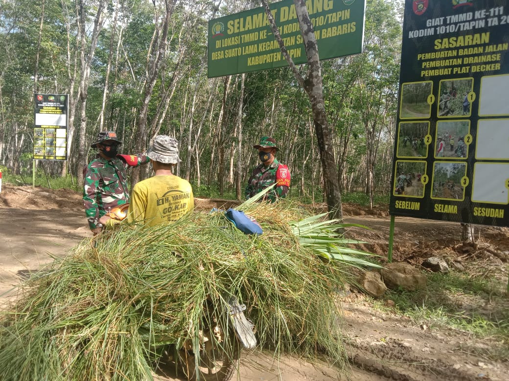 PORTALINDO.CO.ID – TAPIN, Hadirnya jalan baru program Tentara Manunggal Membangun Desa ( TMMD ) Ke-111 Kodim 1010/Tapin, penghubung empat desa antara lain Desa Suatao Lama, Desa Suato Baru, Desa Salam Babaris dan Desa Pantai Cabe Kecamatan Salam Babaris, juga mencerahkan wajah para petani dan peternak, salah satunya adalah Slamet (45), warga Desa Pantai Cabe.