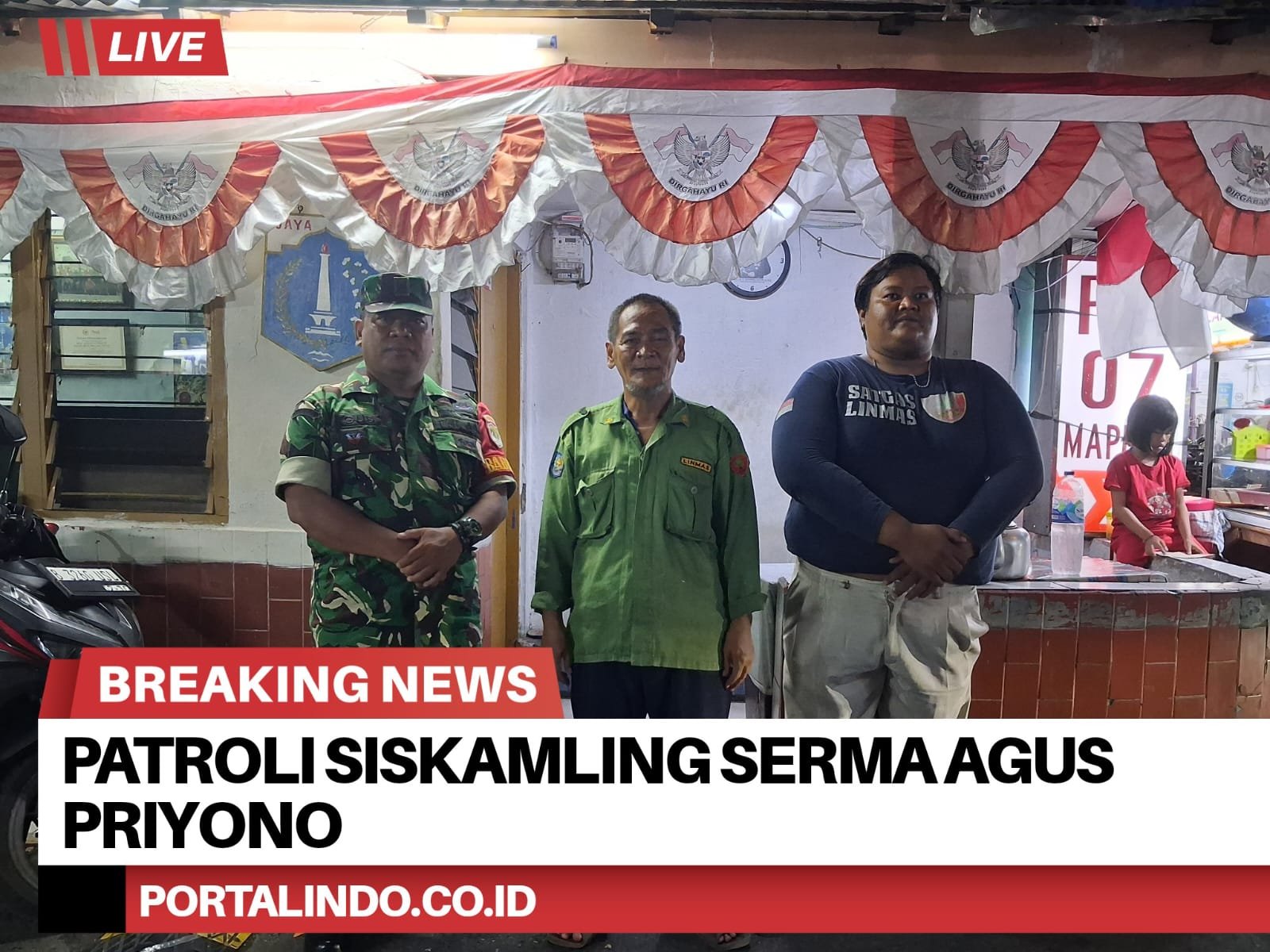 Portalindo.co.id | Jakarta, Kodam Jaya _ Babinsa Koramil 01/Tamansari Kodim 0503/JB, Serma Agus Priyono bersama komponen pendukung (Komduk) Wanra, Linmas dan warga masyarakat, melaksanakan patroli siskamling/pam swakarsa di wilayah binaan. Jumat malam (13/02).