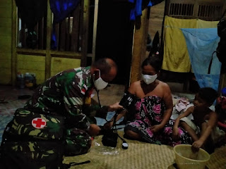 Menyambangi rumah warga yang yang sakit merupakan wujud kepedulian Satgas Pamtas terhadap masyarakat yang membutuhkan pelayanan kesehatan, terutama di tengah-tengah pandemi Covid-19 yang saat ini sedang melanda dunia termasuk hampir di seluruh wilayah NKRI termasuk dalam hal ini wilayah perbatasan.