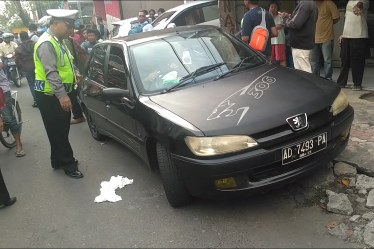 Kejadian yang menimbulkan kemacetan, Sebuah mobil sedan warna hitam yang sedang melaju di Jalan Letjend Sutoyo, Kota  kediri, jawa timur mendadak berhenti di tengah jalan, Selasa (23/4/2018) sore,
