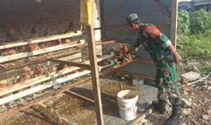“Budidaya ayam petelur menjadi salah satu upaya koramil dalam mendukung program pemerintah terkait ketahanan pangan.”ungkap Serda Nursan.