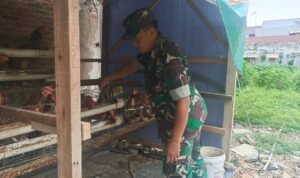 Ungkap Babinsa Serka Rusnanto, kegiatan dalam memonitoring budidaya ayam petelur dengan mengadakan pengecekan kondisi ayam, memberi makan dan minum, mengambil telur dan membersihkan kandang.