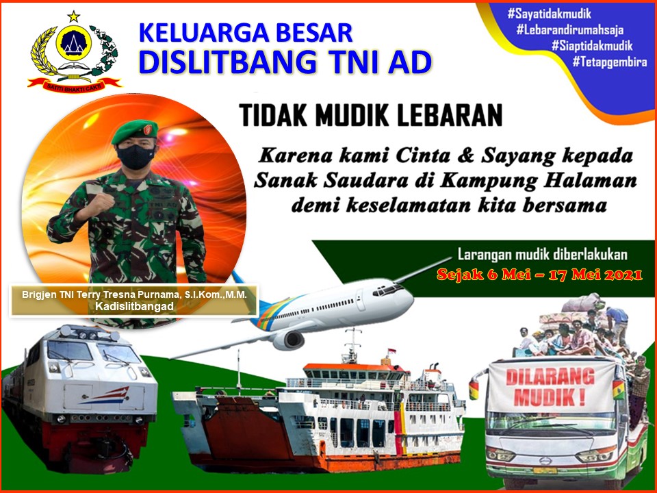 Dikatakan Kadislitbangad, seluruh Prajurit dan PNS Dislitbangad harus menyambut baik sekaligus mendukung kebijakan pemerintah untuk tidak mudik lebaran dan lebaran di jakarta serta di rumah saja sesuai dengan peraturan larangan mudik 6 hingga 17 Mei 2021.