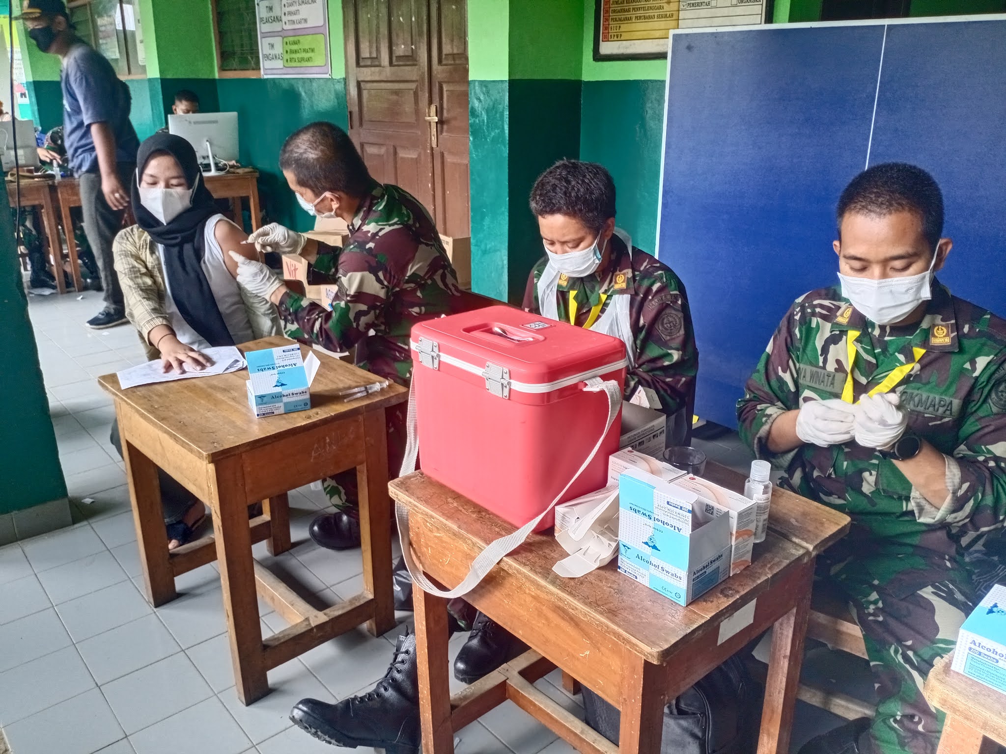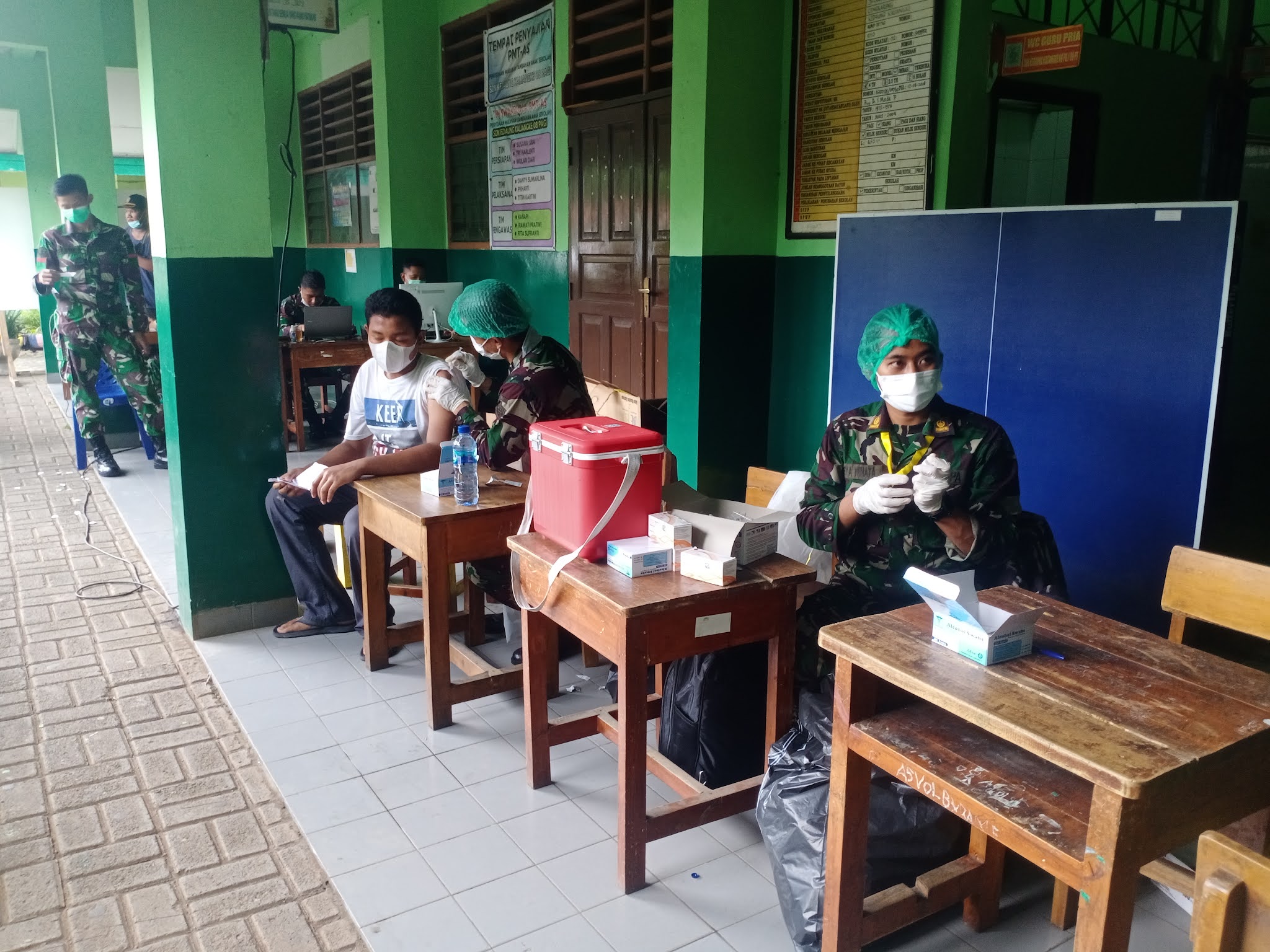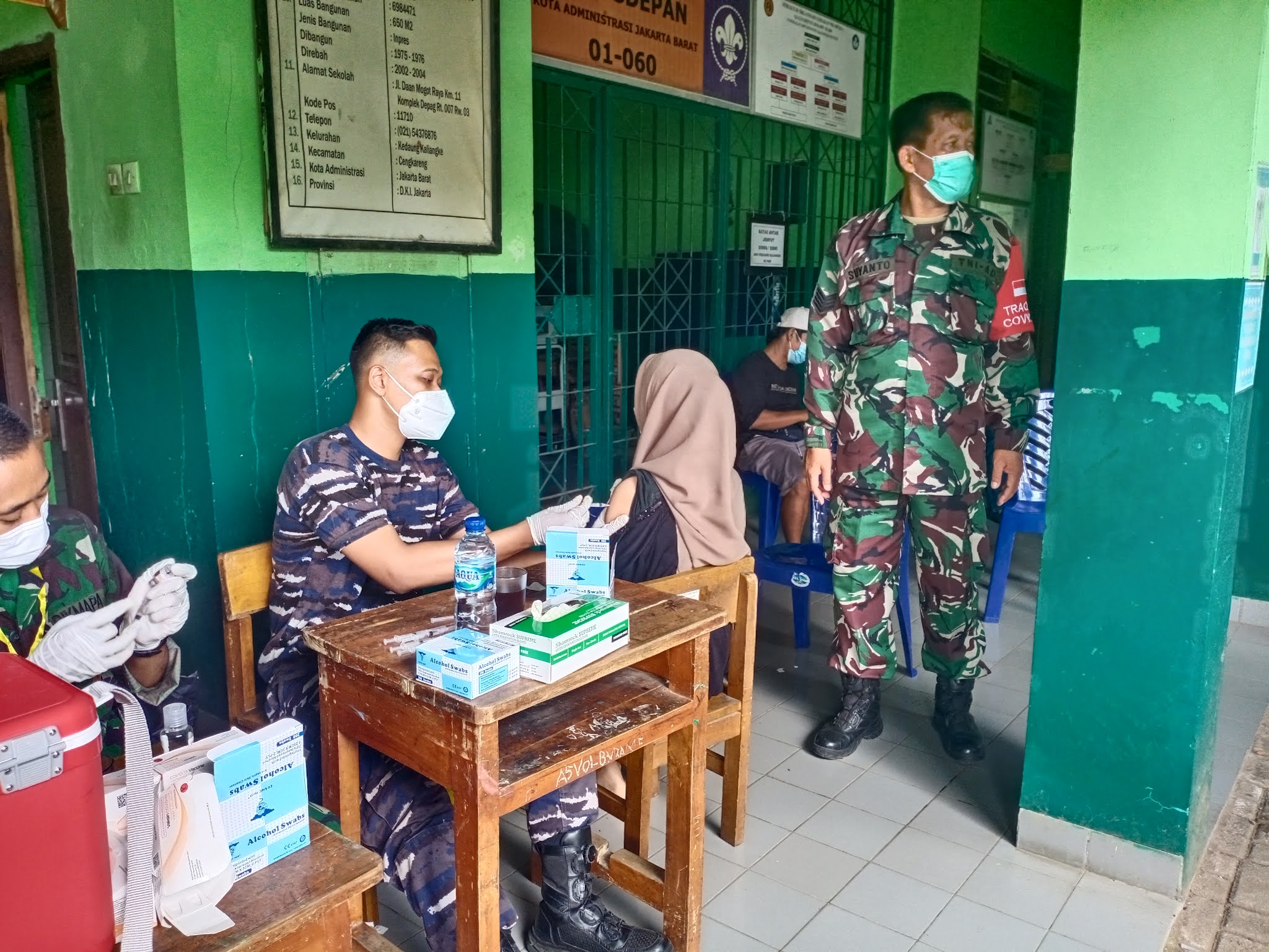 Koramil 04 Cengakareng Kodim 0503/JB gelar Serbuan Vaksinasi TNI di SDN 03 Pagi / 08, Kel Kedaung Kaliangke, Jalan Komp Depag Kalimati, Rt. 007/003, Cengkareng, Jakarta Barat. Rabu, 21 Juli 2021.