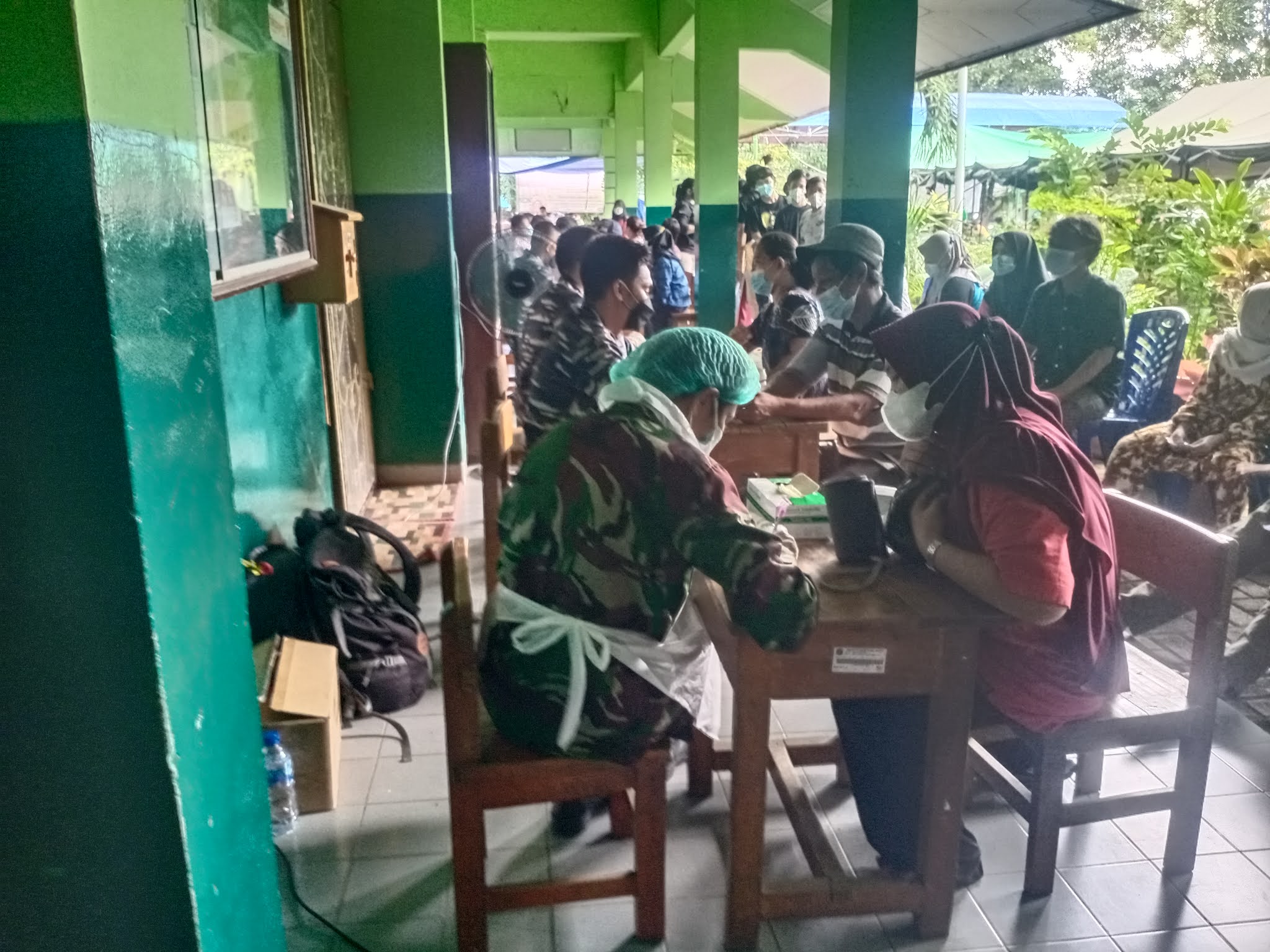 “Target Kita 1000 orang yang terdaftar 865 orang dan yang tervaksi n 800 orang serta tunda 65 orang.”kata Serma Suyanto.